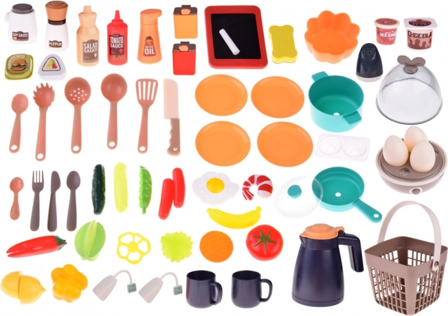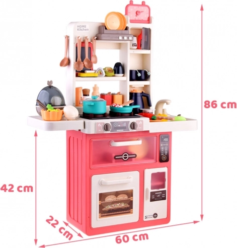 Cuisine pour enfants avec vapeur, lumières et sons, réfrigérateur et accessoires, 63 pièces
