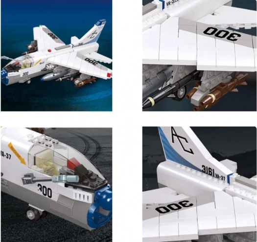 Le set avion d’attaque est un excellent choix pour les fans de technologie militaire et d’aviation. Les pièces sont parfaitement réalisées dans une combinaison de couleurs blanc-gris, ce qui apportera sans aucun doute beaucoup de plaisir à tout amateur d’aviation et d’histoire de ces appareils. La construction garantit non seulement beaucoup de divertissement, mais aussi le développement de la coordination œil-main chez les enfants.