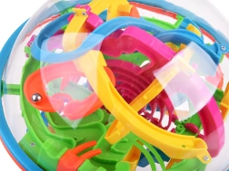 Découvrez un défi passionnant pour les enfants et les adultes avec le Intellect ball Labyrinthe. Cette grande sphère transparente cache un labyrinthe coloré et complexe plein de virages, de tunnels et de toboggans :