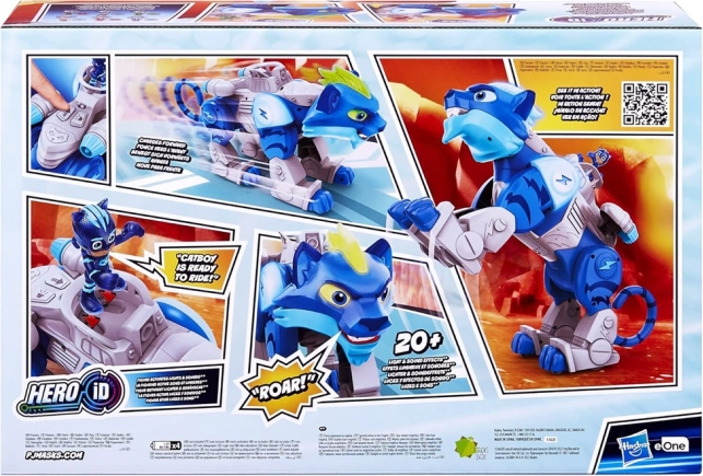 Les fonctionnalités comprennent des membres articulés pour simuler des combats, des sons activés par des boutons et la technologie Hasbro Hero ID qui reconnaît les autres personnages de la série PJ Masks. Ce jouet est conçu pour encourager le jeu imaginatif et développer la créativité des enfants.