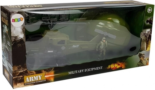 Contenu de la boîte : hélicoptère, casque, figurine de soldat et set d’armes en plastique. Le jeu développe la coordination, l’imagination et la pensée stratégique. Le produit est conforme aux normes CE et EN 71, pour que les enfants puissent profiter de leur divertissement tactique en toute sécurité.