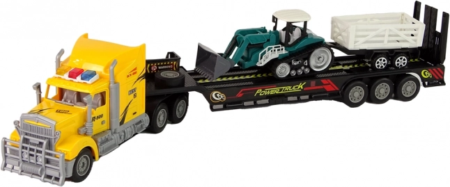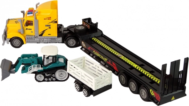 • Ensemble réaliste : camion, remorque, pelleteuse à chenilles et petite remorque