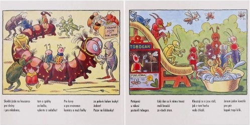 Découvrez le monde enchanteur des petits insectes qui passent une journée à la foire. Le moustique, le bourdon et la sauterelle jouent dans l’orchestre, les bousiers luttent sur les tapis, le criquet des prés court comme s’il jouait sa vie et, chez Madame l’abeille, une douceur sucrée les attend. Sans oublier un super tour de chenille et bien d’autres plaisirs.