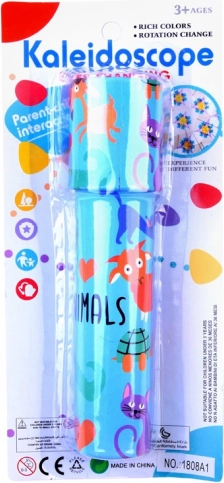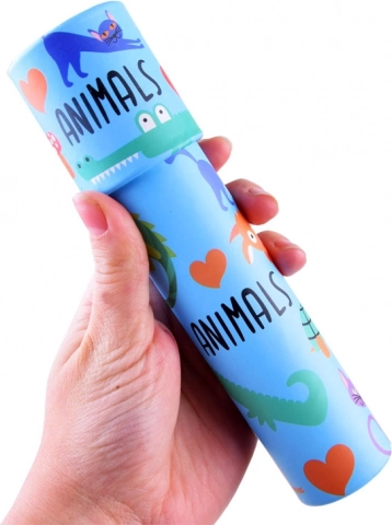 Des illustrations joyeuses d’animaux et des couleurs vives rendent ce kaléidoscope particulièrement attrayant pour les enfants.