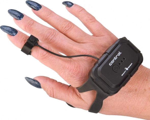 Le bracelet capteur au doigt réagit à l’inclinaison de la main : incliné vers l’avant, il avance ; vers l’arrière, il recule ; les mouvements latéraux gèrent le braquage. Une commande intuitive que les enfants maîtrisent immédiatement.