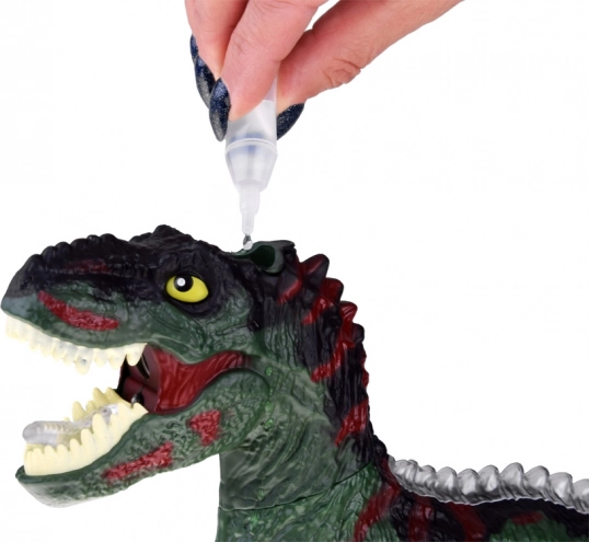 Le dinosaure RC sait avancer et reculer, effectuer des rotations à 360°, rugir et proposer des modes danse amusants avec musique. Après ajout d’eau dans le réservoir de la tête, une vapeur froide, éclairée par LED rouge, s’échappe de la gueule comme un feu ardent – en toute sécurité et sans odeur.