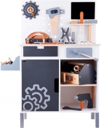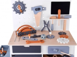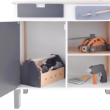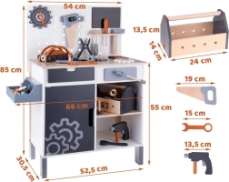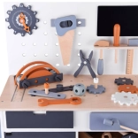 La table de travail en bois pour enfants est idéale pour les petits bricoleurs qui veulent jouer et développer leurs compétences. Ce jeu polyvalent comprend plus de 55 outils et accessoires, soutenant le développement créatif et moteur des enfants. Conçu en mettant l'accent sur la sécurité et le plaisir.