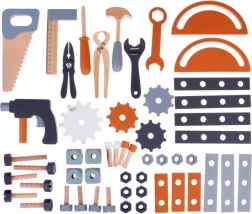Le set comprend une large gamme d'outils comme la scie, la perceuse, le marteau, les clés, les tournevis et bien d'autres - idéal pour développer des compétences pratiques.