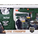 Cet équipement militaire complet ravira tous les petits aventuriers. Grâce au gilet tactique léger et à la large gamme d’accessoires, les enfants peuvent facilement jouer aux éclaireurs, gardes ou héros. Les armes avec effets sonores et le masque amovible renforcent l’authenticité du jeu, tandis que la boussole et la jumelle stimulent l’imagination et l’orientation sur le terrain.