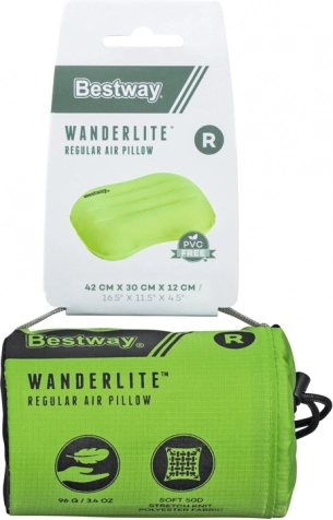 Coussin gonflable Bestway WanderLite est fabriqué à partir de matériau résistant ToughLite et de maille polyester souple et flexible 50D. Il est léger et ne prend pas beaucoup de place, se plie et se transporte facilement. Grâce à l'étui dans lequel vous pouvez le ranger après chaque utilisation, le stockage est simplifié.