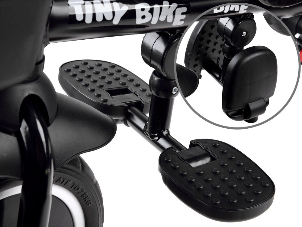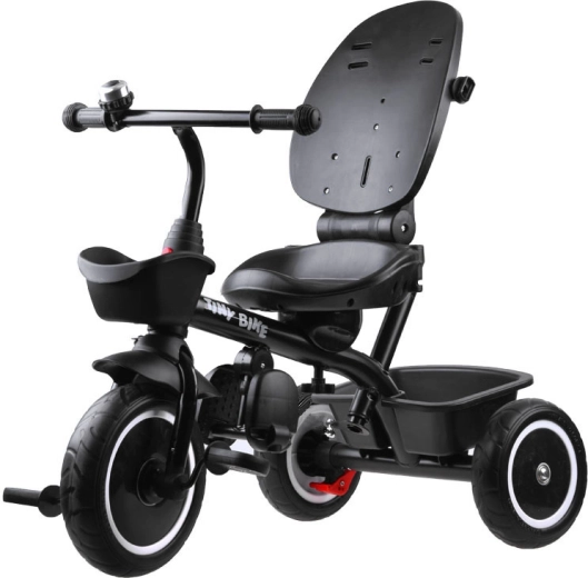 Les parents apprécieront la barre de poussée réglable avec prise en main confortable, les freins de stationnement doubles sur les roues arrière et les espaces de rangement pratiques : panier avant, grand panier arrière et petit sac pour les accessoires. Les roues en mousse EVA ne nécessitent pas de gonflage et offrent une conduite silencieuse et stable. Les repose‑pieds rabattables et les pédales sur la roue avant facilitent la transition entre les modes, pour que le tricycle suive la croissance de l’enfant en douceur.