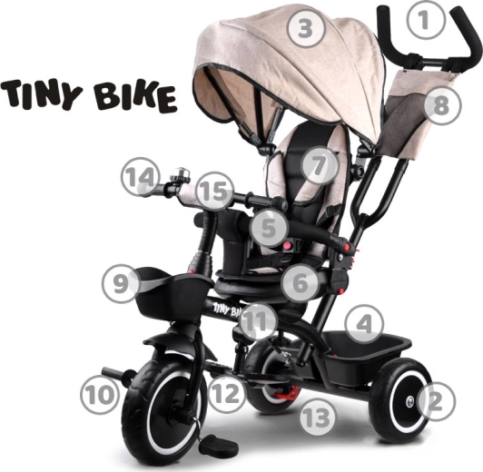 Tricycle pour enfant 3‑en‑1 avec auvent TINY BIKE – Beige
