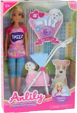 Poupée Anlily avec son chien dans une poussette