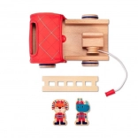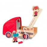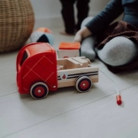 Ce set de pompier bien pensé offre des heures de jeu et d’apprentissage. Le camion possède un bras rotatif sur la benne, sur lequel se fixe le tuyau à corde enroulable; l’échelle en bois se place facilement dans une encoche dédiée et une cloche est dissimulée dans la cabine souple. Deux figurines en bois – Rhinocéros Marius et Lion Jack – invitent au jeu de rôles, aux missions de sauvetage et à l’invention d’histoires.