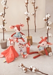 Ce bracelet hochet tout doux avec le motif du faon STELLA se fixe facilement au poignet et devient un compagnon agréable pour les plus petits. À chaque mouvement de la main, il tinte doucement, favorisant ainsi la perception auditive et la curiosité naturelle de l’enfant.