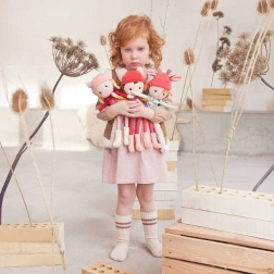 La poupée Stella (30 cm) de la marque belge Lilliputiens séduit par son design délicat et ses détails soignés. La douceur des textiles, les yeux, le nez et les taches de rousseur brodés et son format agréable en font la compagne idéale pour la nuit, la poussette ou les voyages. Son style est complété par une petite robe fleurie, des manches vert menthe et une écharpe assortie.