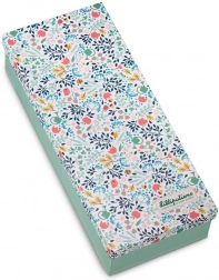 Une boîte décorative rigide avec couvercle fleuri, idéale pour ranger la poupée et les petits trésors.