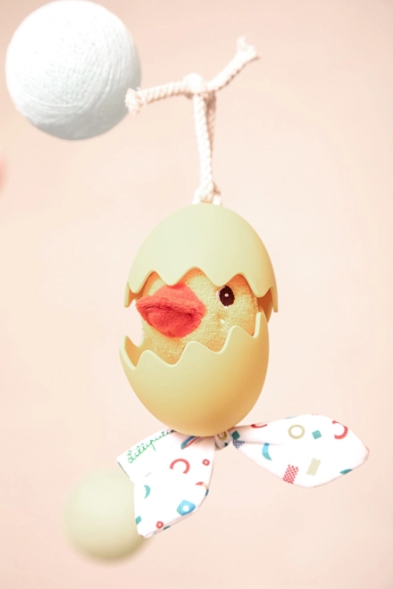 Grâce à sa coquille en silicone, l’œuf est doux au toucher et se nettoie facilement d’un simple coup d’éponge. Une boucle pratique permet un accrochage rapide où vous en avez besoin. L’association textile et silicone favorise le développement sensoriel et la motricité fine.