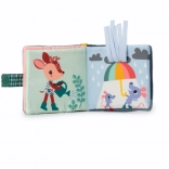 Le livre ne contient pas de texte, laissant ainsi toute la place à l’imagination et aux histoires partagées. Conçu en tissu polyester et coton de qualité, il est léger, facile à saisir et adapté aux petites mains. L’entretien est simple – lavage à la main recommandé.