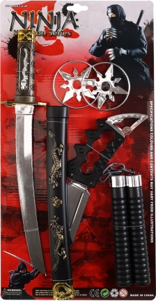 - Katana, nunchakus, étoiles de lancer, couteau (4 pièces au total)
