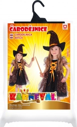 Découvrez le déguisement de sorcière magique conçu pour les filles de 8 à 10 ans. Robe noire avec rubans orange et étoiles métalliques pour un look éblouissant. N'oubliez pas le chapeau de sorcière, qui complète parfaitement l'ensemble.