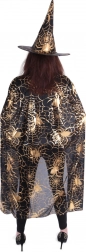 La cape noire ornée de toiles d’araignée et d’araignées dorées scintille à la lumière et attire tous les regards en soirée.