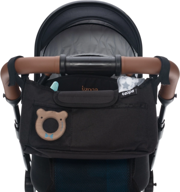 L’organisateur pour poussette PLUS, grâce à sa taille idéale, convient à toutes les poussettes. Il est très spacieux et contient jusqu’à 6 poches répondant aux besoins et aux exigences de chaque maman moderne. Il comprend naturellement une poche frontale pour téléphone et une poche pour petits objets. À l’arrière de l’organisateur se trouve une grande poche en mesh pour y placer des magazines. La poche principale est conçue pour permettre l’insertion de bouteilles sur les côtés. Son installation est simple et rapide grâce à des crochets à bandes auto-agrippantes.