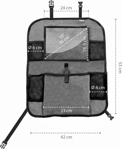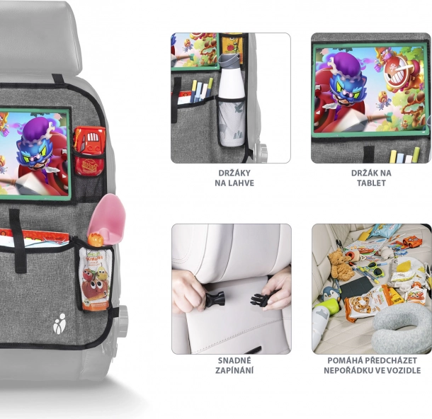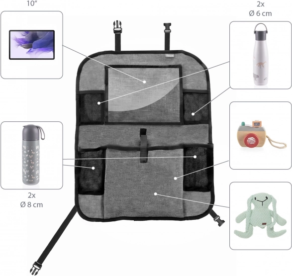 Pratique, l’organiseur de siège avec pochette pour tablette est le compagnon idéal pour chaque voyage avec des enfants.