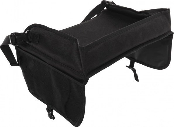 Grâce à la sangle de fixation réglable, le plateau se fixe facilement à la plupart des sièges auto pour enfants à haut dossier. Le textile résistant est facilement lavable, ce qui en fait aussi un excellent support pour le goûter. La finition noire est universelle et apporte une touche propre et élégante.