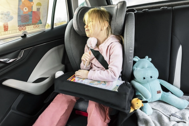 Fini les trajets ennuyeux. Le plateau de jeu offre aux enfants une surface confortable et stable pour les coloriages, les constructions ou la tablette. Les poches latérales gardent tout à portée de main – crayons, mouchoirs et petits jouets – et l’intérieur de la voiture reste bien organisé.