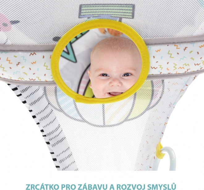 - Amusement et stimulation : jouets suspendus, mélodies et motifs contrastés pour les stimuli visuels et auditifs.