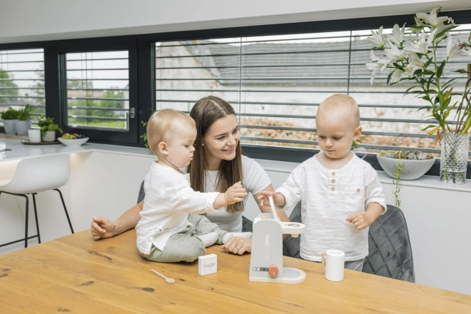 Une cafetière en bois soigneusement conçue invite directement à préparer un bon café. La cafetière dispose de plusieurs boutons qui peuvent être tournés ou pressés. Sont inclus une grande tasse en bois avec une cuillère et des ingrédients pour préparer le café. Le jouet est fabriqué en bois de qualité et avec des peintures à base d’eau.