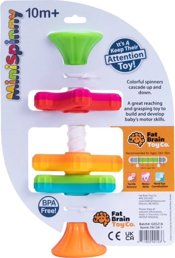 Grâce à la ventouse, le jouet se fixe facilement sur une table, le plateau de la chaise haute ou une fenêtre – rien ne se perd et les pièces restent ensemble. MiniSpinny est idéal à la maison, en déplacement et dans la salle de bain. Le plastique sûr, sans BPA ni phtalates, garantit un jeu en toute tranquillité.