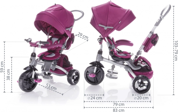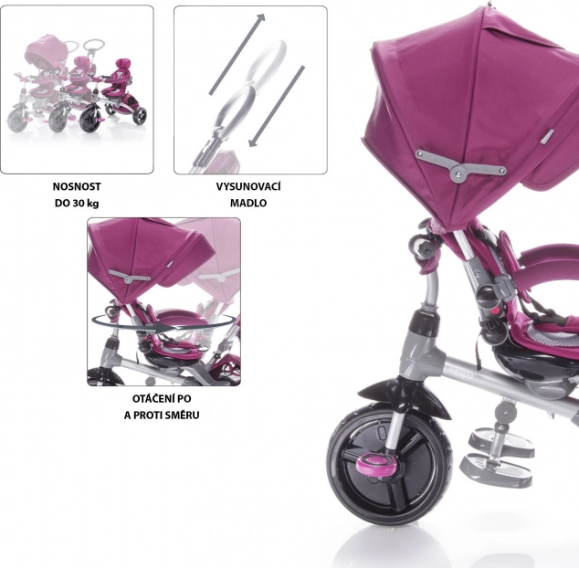 - Possibilité de débrayer les pédales lorsque le parent pousse le tricycle.