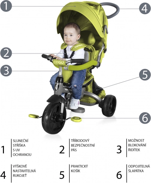 - Le tricycle comprend un panier arrière pratique et un sac pour les petits objets, pas seulement pour l’enfant.