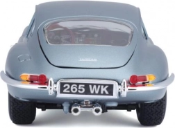 Modèle réduit métallique 1:18 Bburago 18-12044 Jaguar E-type Coupé, pas seulement pour les collectionneurs. Il possède des portes et un capot ouvrants, et la direction des roues via le volant est pleinement fonctionnelle. La couleur du modèle est bleu argent métallisé.