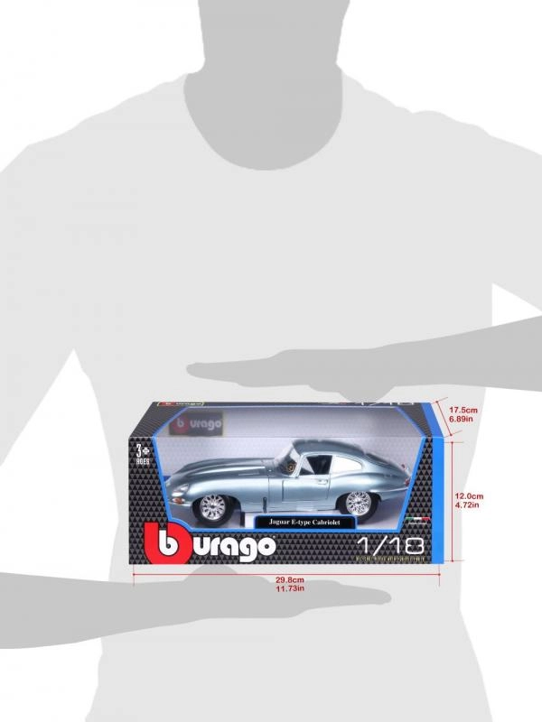 Modèle réduit métallique 1:18 Bburago 18-12044 Jaguar E-type Coupé, pas seulement pour les collectionneurs. Il possède des portes et un capot ouvrants, et la direction des roues via le volant est pleinement fonctionnelle. La couleur du modèle est bleu argent métallisé. Les modèles de voitures de collection Bburago comptent parmi les plus appréciés du marché, non seulement grâce à leur belle finition, mais aussi à leur prix abordable. La carrosserie des modèles est en métal et comporte de nombreux détails.