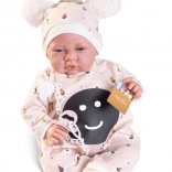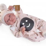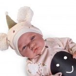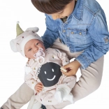 Poupée espagnole faite main de la marque Antonio Juan, elle propose des détails du visage fidèlement travaillés et des membres articulés permettant différentes poses, y compris la position assise autonome. Son corps souple en tissu assure des câlins agréables et un confort de jeu.