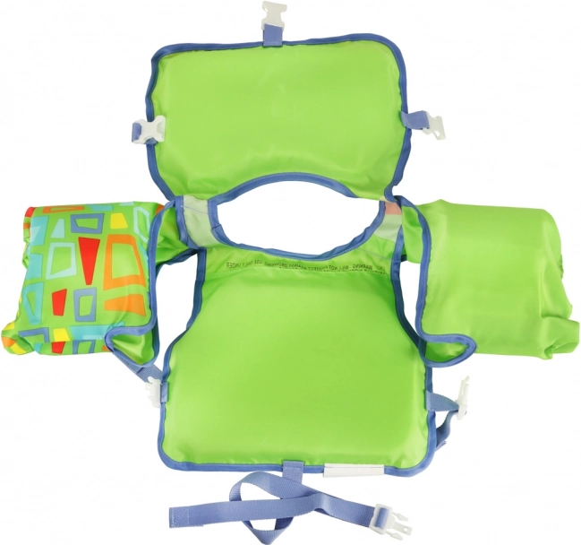 Le rembourrage en mousse de la veste assure une excellente flottabilité, tandis que les manches attachées recouvertes de matériau doux maintiennent l'enfant à flot sans problème. Les boucles réglables assurent un ajustement parfait au corps de l'enfant, garantissant le confort pendant le jeu. La veste se distingue par son design vert éclatant et son motif intéressant qui attire l'attention, rendant l'enfant visible même de loin.