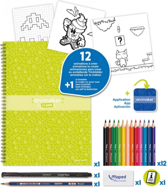 Maped Creativ propose le kit Animaker Flash, qui permet de réaliser 12 mini films d’animation d’après un modèle proposé ou selon sa propre idée sans limite.