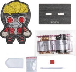 L'ensemble Crystal Art - Star-Lord contient tout le nécessaire pour créer un tableau scintillant fascinant. Les processus créatifs incluent un modèle imprimé avec une couche adhésive, des cristaux colorés et des outils pour leur application.