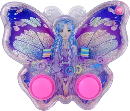 Amusant jeu d’eau de poche en forme de papillon pour enfants et adultes. À l’aide de deux boutons, dirigez le flux d’eau et placez les anneaux colorés sur les picots. Idéal pour le voyage, l’école ou les moments de calme – développe la patience et la concentration. Disponible en trois couleurs.