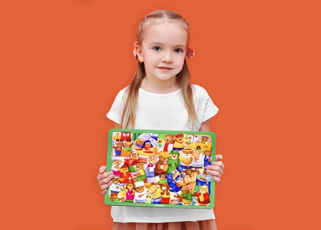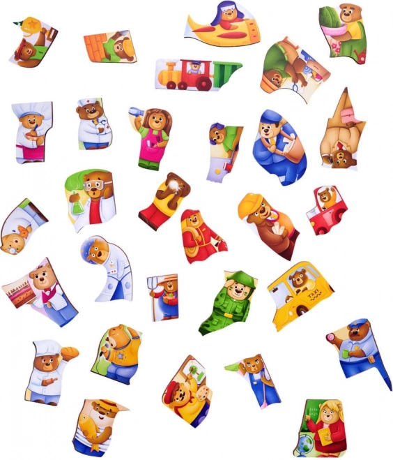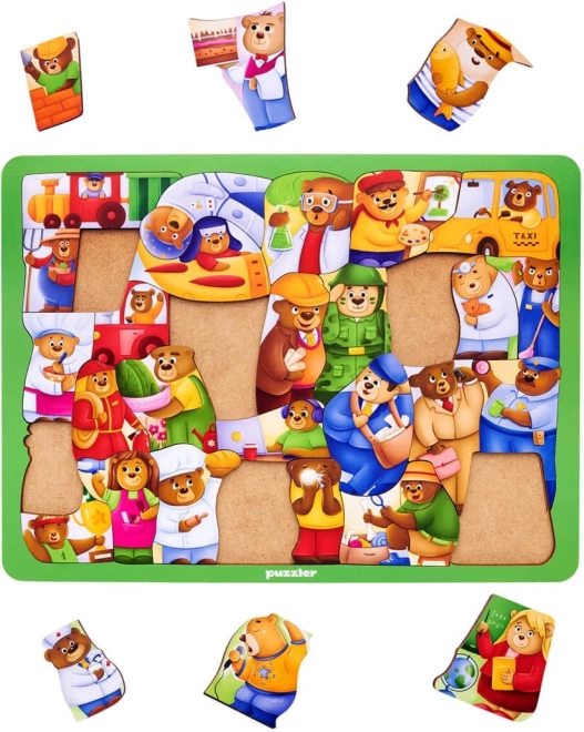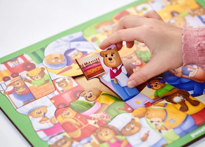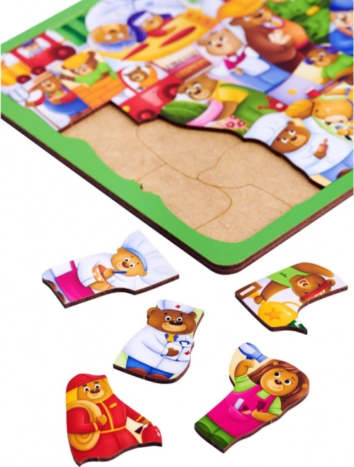 Le puzzle en bois avec des oursons présente aux enfants le monde de différentes professions – du secouriste et du médecin jusqu’au musicien. Grâce aux illustrations vives et à la conception robuste en bois, il offre un divertissement qui soutient en même temps le développement de compétences importantes.