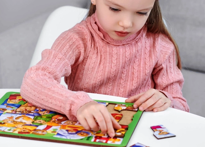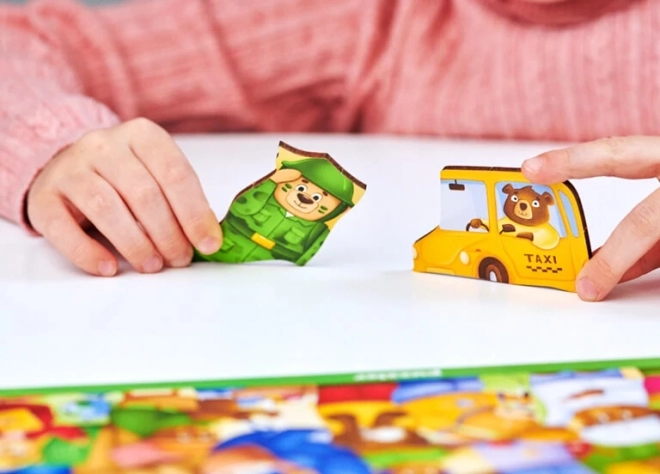 Jouer avec le puzzle exerce la patience, la concentration et la coordination œil–main. Les enfants peuvent découvrir les métiers qui existent et enrichir leur vocabulaire ainsi que leur imagination pendant l’assemblage.