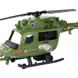 Hélicoptère de combat vert avec cockpit transparent et marquages détaillés, apportant action et réalisme au jeu. Les effets lumineux et sonores renforcent l’ambiance de chaque mission.