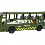 Bus/transporteur vert robuste avec inscriptions militaires, élargissant les possibilités de jeu au sol. Idéal pour le transport des unités et de l’équipement.
