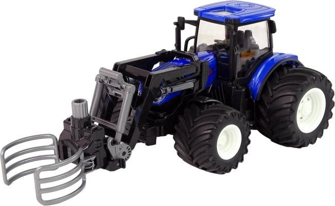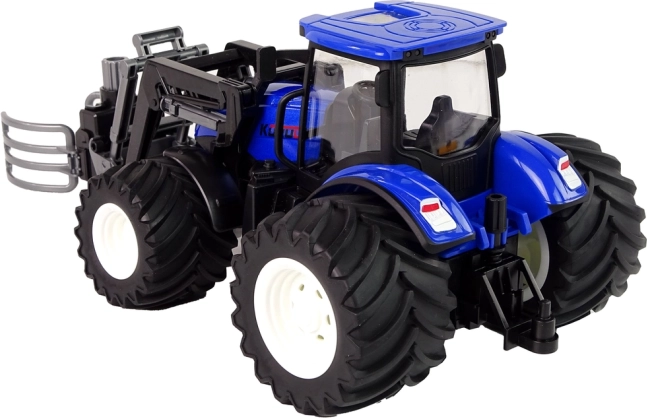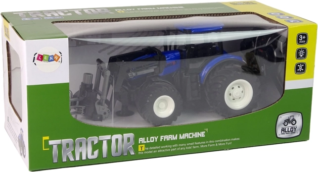 La cabine bleue, le profil marqué des pneus et l’accessoire avant créent l’allure authentique d’une machine agricole qui enthousiasmera chaque enfant.