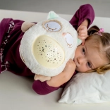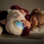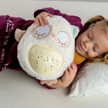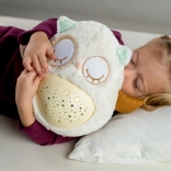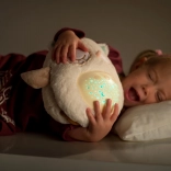 Ce doudou en peluche ultra doux associe l’étreinte chaleureuse à des fonctions intelligentes pour faciliter l’endormissement. Le hibou projette un ciel étoilé en 8 couleurs, diffuse 8 berceuses ainsi que des sons prénataux apaisants auxquels les tout-petits sont habitués dans le ventre de maman. Une fois la mélodie terminée, la lumière reste douce encore environ une minute puis s’éteint automatiquement.