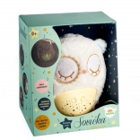 Le petit hibou projette un ciel nocturne en 8 teintes colorées qui créent une atmosphère propice à l’endormissement et apaisent les sens de bébé.