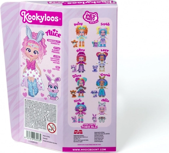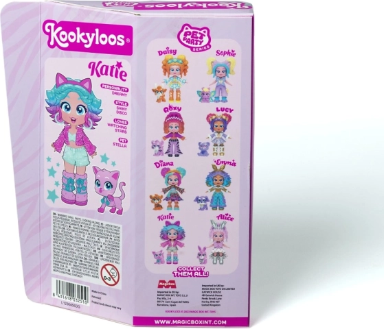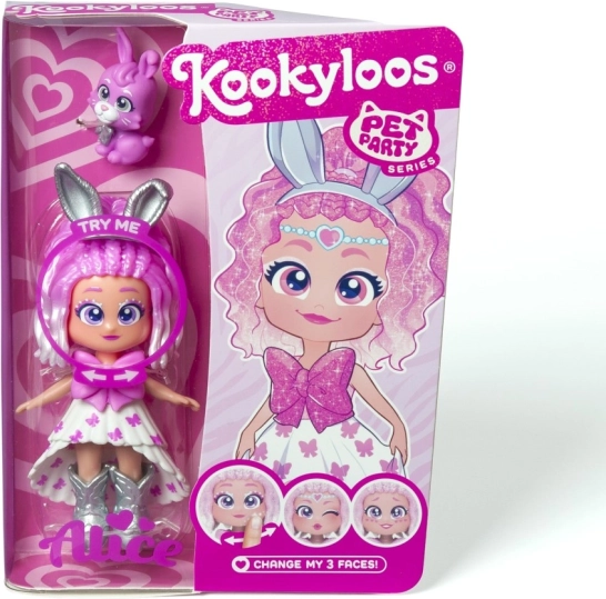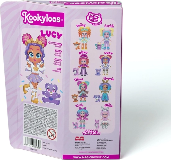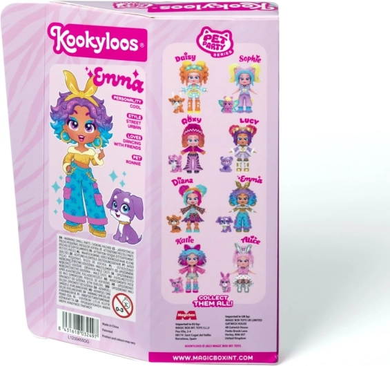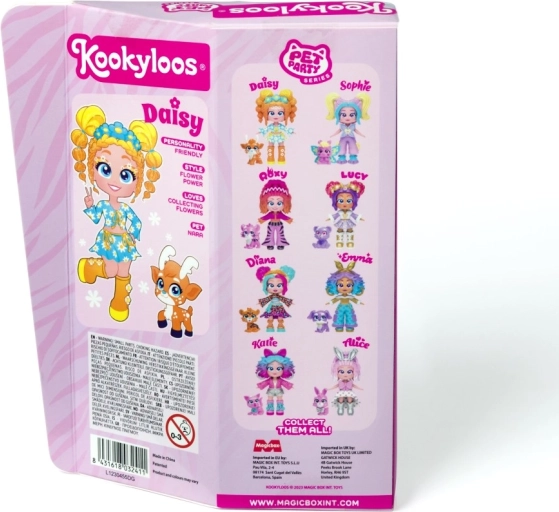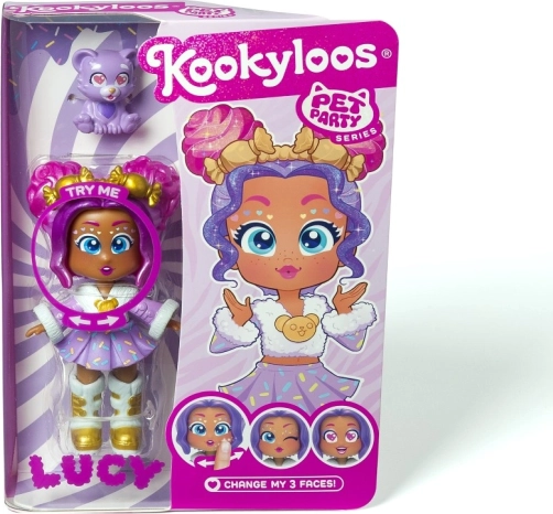 Poupée avec animal KookyLoos Pets Party – 8 poupées différentes + leurs animaux de compagnie – Les KookyLoos sont de retour, chacune avec son propre compagnon ! Faites connaissance avec Lucy, Sophie, Katie, Roxy, Alice, Daisy, Diana, Emma et leurs animaux de la série Pet Party. Nouvelles poupées et nouvelles expressions de visage, nouveaux looks et surtout d’adorables nouvelles compagnes pour les poupées les plus originales ! ADORABLES ANIMAUX – Chaque KookyLoos de la série Pet Party a son propre animal super mignon : un ourson en peluche, un papillon, un chat, un tigre, un lapin, un daim, un léopard ou un chiot. Lequel sera votre préféré ? TENUES ET ACCESSOIRES TENDANCE – Les KookyLoos reviennent avec des tenues plus fashion que jamais ! Chaque poupée a son propre style, assorti à sa personnalité – et ses vêtements et coiffures ont un effet nacré qui brille partout ! N’oubliez pas que chaque KookyLoos possède ses propres accessoires, interchangeables avec ceux des autres poupées Pet Party. VISAGE CHANGEANT – D’un simple clic, vous pouvez changer leur expression. Chaque poupée a 3 visages différents. ENTREZ DANS L’UNIVERS KOOKYLOOS – Les visages changeants et la multitude d’accessoires interchangeables entre les poupées font des KookyLoos un jeu idéal. Les enfants pourront développer leur créativité et leur imagination en inventant des histoires amusantes.